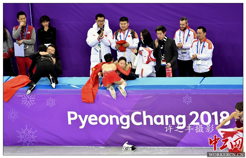 2月15日,2018年平昌冬奥会在江陵冰上运动场,花样滑冰双人滑自由滑比赛中,短节目排名第一的隋文静/韩聪倒数第二位出场,最终自由滑获得分153.08分,总分235.47遗憾获得亚军,仅落后冠军0.43分。这是隋文静/韩聪颁奖结束后抱着前奥运会冠军申雪和赵宏博留下了伤心的眼泪。这是2009年1月8日工人日报体育版刊用的隋文静/韩聪的照片,那时他俩是第一次搭档参加全国比赛,近10年来这对搭档能站在奥运会的领奖台上已经很不容易了。期待着你们2022年北京冬奥会的金牌。工人日报-中工网特派记者许之丰摄影报道