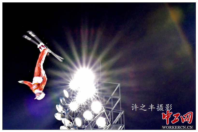 2月16日,2018平昌冬奥会自由式滑雪女子空中技巧决赛,白俄罗斯选手获得金牌,中国选手张鑫获得银牌,孔凡钰摘铜,中国选手徐梦桃第二跳遗憾失误。图为自由式滑雪女子空中技巧决赛。工人日报-中工网特派记者许之丰摄影报道