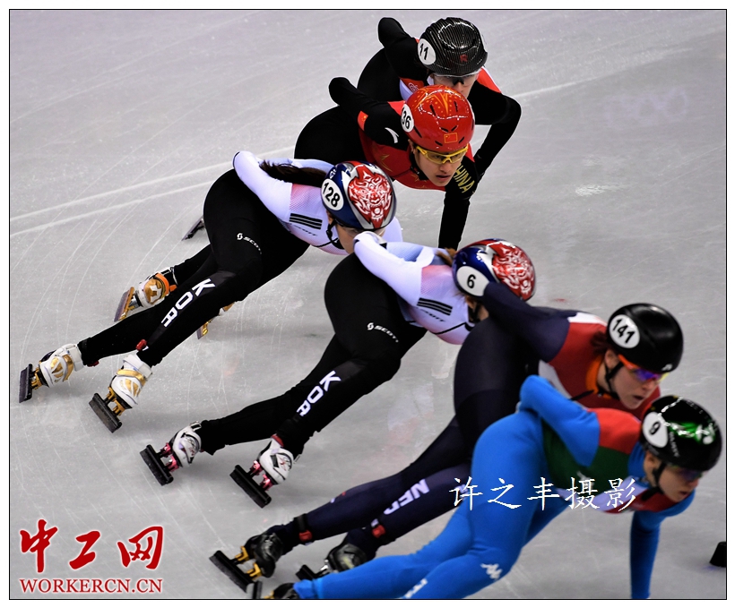 2月17日晚,2018年平昌冬奥会道速滑比赛女子1500米决赛。韩国名将崔敏静以2分24秒948夺得金牌,中国17岁小将李靳宇2分25秒703获得银牌,加拿大选手金-伯丁以2分25秒834获得铜牌。这枚银牌是中国短道队本届冬奥会首枚奖牌。工人日报-中工网特派记者许之丰摄影报道