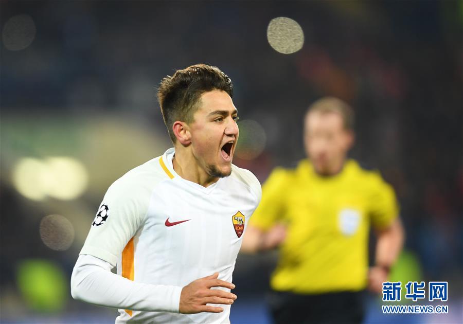 ↑2月21日,罗马队球员云代尔在比赛中庆祝进球。当日,在2017-2018赛季欧冠联赛八分之一决赛首回合比赛中,意大利罗马队客场以1比2不敌乌克兰顿涅茨克矿工队。 新华社/法新