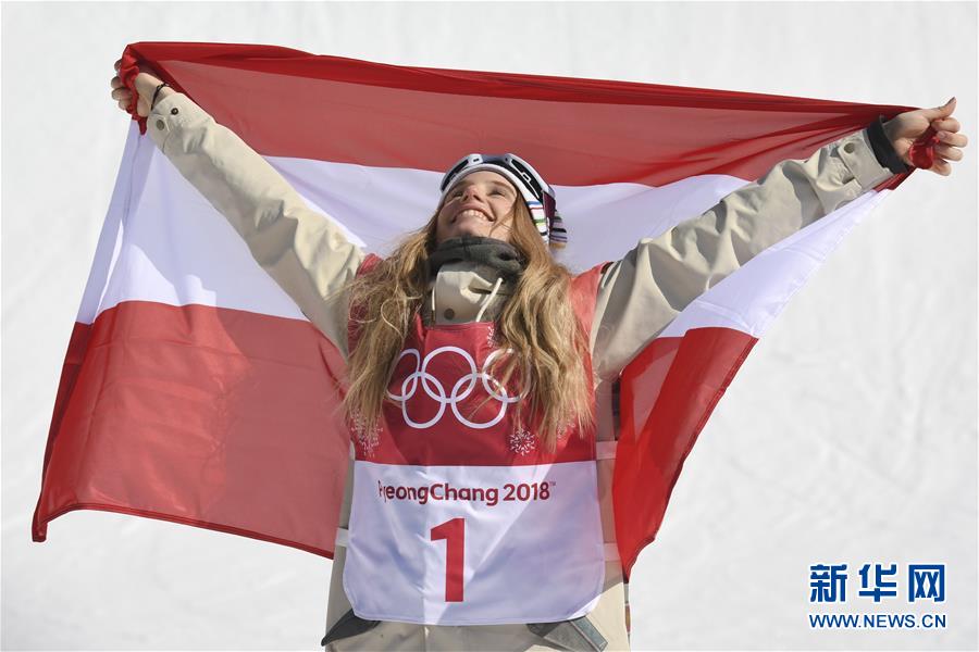 ↑2月22日,奥地利选手安娜· 加塞尔在比赛后庆祝。当日,2018年平昌冬奥会单板滑雪女子大跳台决赛在阿尔卑西亚跳台滑雪中心举行。奥地利选手安娜· 加塞尔以185.00分的成绩排名第一,获得冠军。 新华社记者吕小炜摄