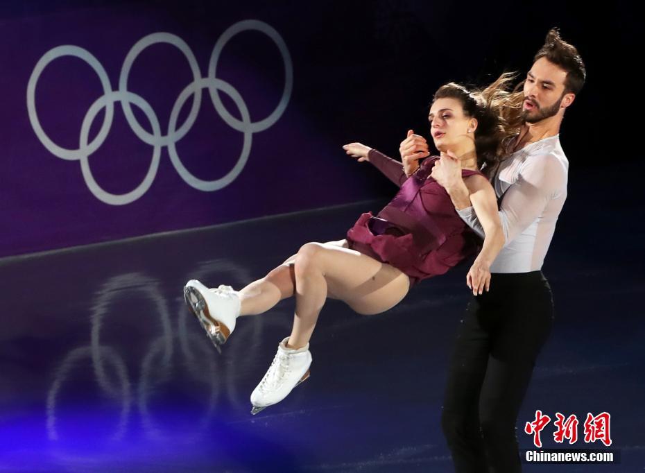 2月25日,平昌冬奥会举行花样滑冰表演,与会选手为观众献上了一场力与美、刚与柔的冰上舞蹈盛宴。图为法国选手表演。中新社记者 宋吉河 摄