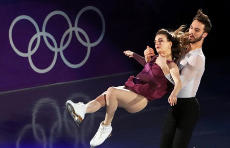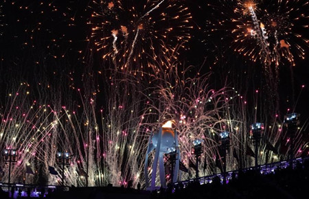 2月25日,韩国国旗在闭幕式上升起。当日,2018年平昌冬奥会闭幕式在平昌奥林匹克体育场举行。 新华社记者李钢摄