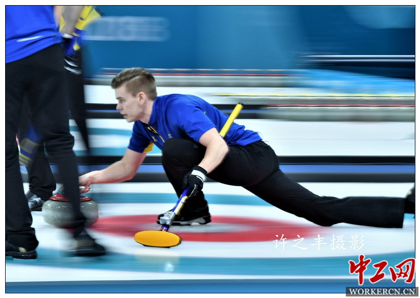 2018年2月24日,在韩国江陵冰壶中心举行的2018年平昌冬奥会男子冰壶决赛中,美国队以10比7战胜瑞典队,夺得平昌冬奥会金牌。工人日报-中工网特派记者许之丰摄影报道
