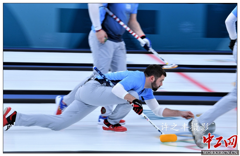 2018年2月24日,在韩国江陵冰壶中心举行的2018年平昌冬奥会男子冰壶决赛中,美国队以10比7战胜瑞典队,夺得平昌冬奥会金牌。工人日报-中工网特派记者许之丰摄影报道