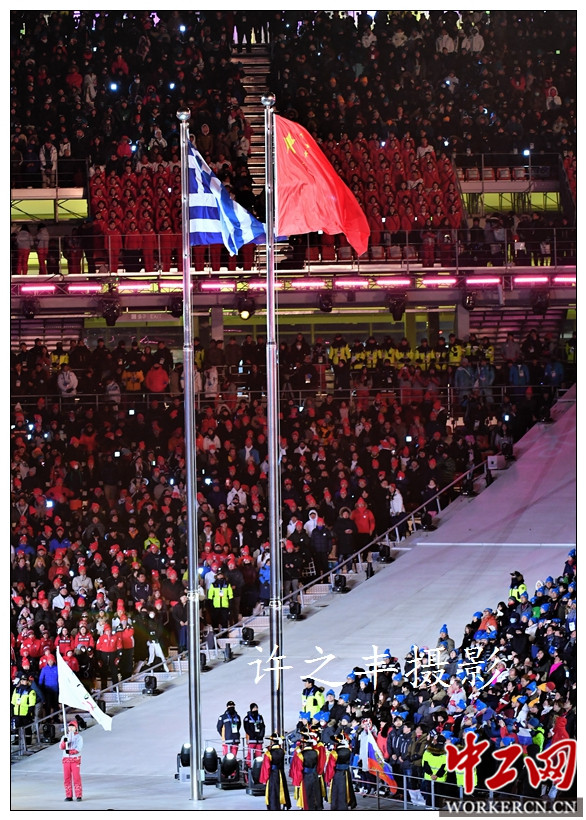 2018年2月25日晚,为期17天的平昌冬奥会就此结束了,五星红旗在平昌体育中心徐徐升起,随着北京市长陈吉宁从巴赫手中接过奥林匹克会旗,冬奥会在未来的四年正式进入了“北京时间”。闭幕式上的北京八分钟,24名来自北京体育大学的轮滑演员和24个带着透明冰屏的智能机器人,象征着第24届北京冬奥会的到来。工人日报-中工网特派记者许之丰摄影报道