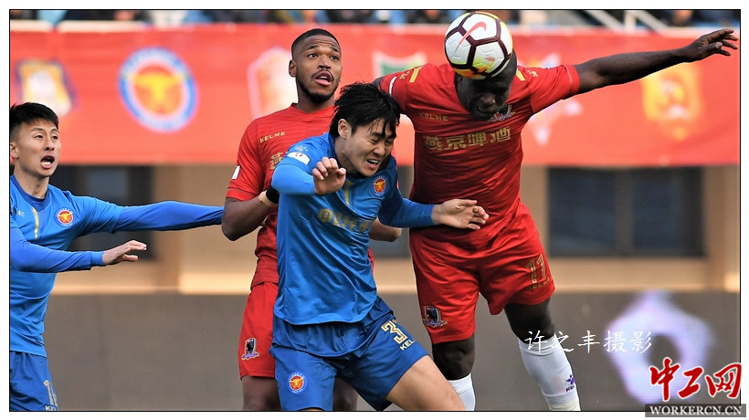 2018年3月10日下午,中国足球协会甲级联赛第一轮比赛,北京北控燕京队主场国家奥体中心体育场以3比0击败浙江毅腾队。北京北控燕京队在新赛季首场比赛取得梦幻般的开局。本赛季不一样的是增加了两位底线裁判,总是在当着摄影记者的视角。工人日报-中工网记者许之丰摄影报道