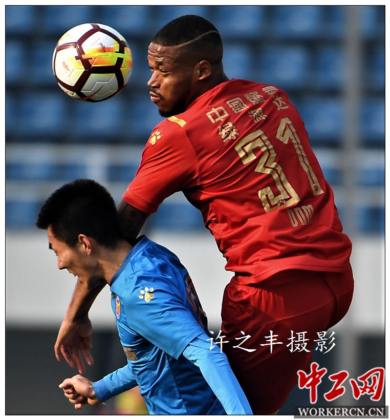 2018年3月10日下午,中国足球协会甲级联赛第一轮比赛,北京北控燕京队主场国家奥体中心体育场以3比0击败浙江毅腾队。北京北控燕京队在新赛季首场比赛取得梦幻般的开局。本赛季不一样的是增加了两位底线裁判,总是在当着摄影记者的视角。工人日报-中工网记者许之丰摄影报道