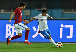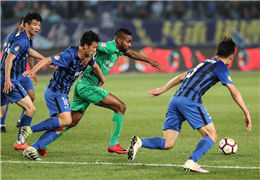 ↑3月11日,北京中赫国安队球员巴坎布(右二)在比赛中突破。当日,在2018赛季中超联赛第二轮比赛中,北京中赫国安队在客场以2比1战胜江苏苏宁队。 新华社记者杨磊摄