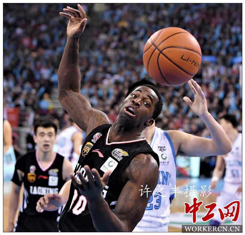 2018年3月22日晚,CBA季后赛四分之一决赛北京与辽宁第四场比赛北京队主场, 最终北京首钢队以72比75负于辽宁队。辽宁队以3比1的总成绩晋级半决赛。图为北京首钢队与辽宁队的比赛。工人日报-中工网记者许之丰摄影报道