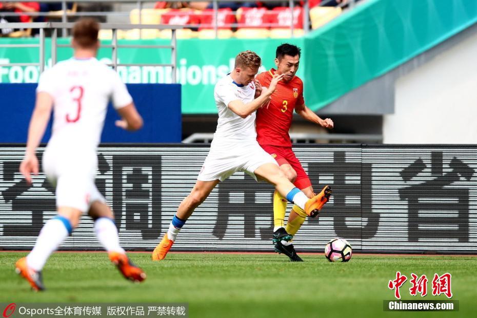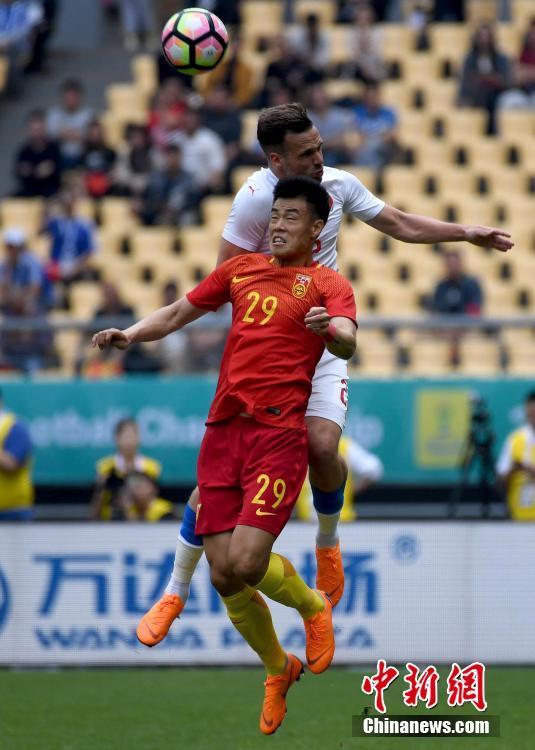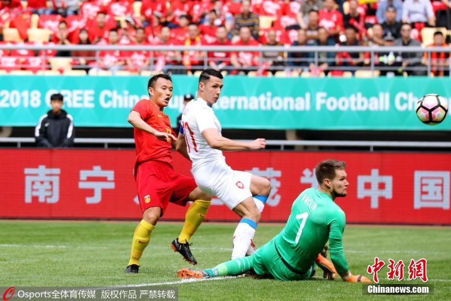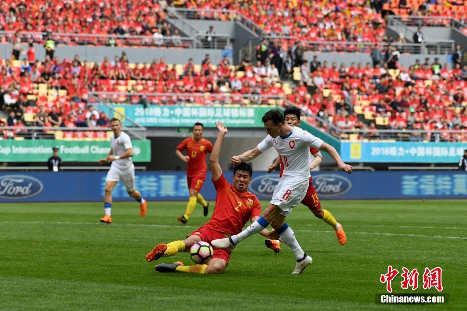 3月26日,2018格力·中国杯国际足球锦标赛中国队对阵捷克队在广西南宁市上演。在季军争夺赛中,捷克队以4-1战胜中国队,夺得本次“中国杯”季军。 中新社记者 俞靖 摄