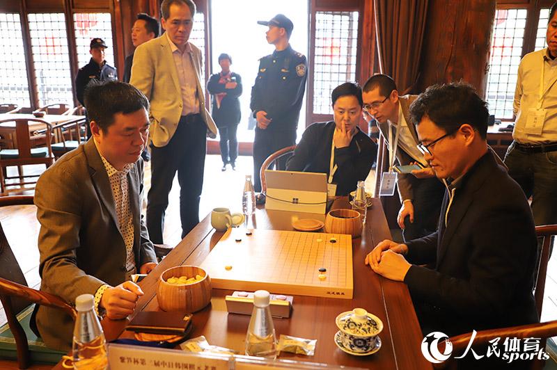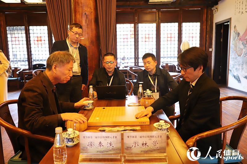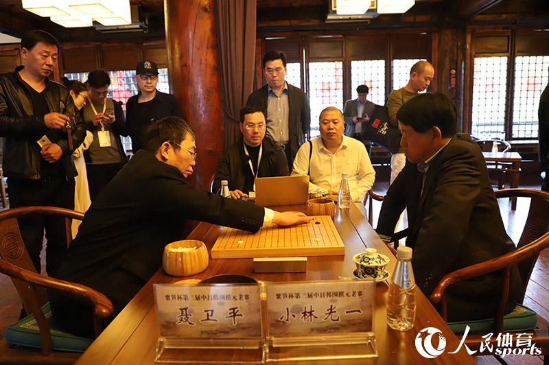 人民网长兴3月27日电(管若寒 摄影报道)“紫笋杯”第二届中日韩围棋元老赛今日开幕,与围甲联赛在浙江长兴同期举行。本届比赛共邀请了8位棋手参赛,包括中日韩各两位棋手以及上届冠亚军曹大元、小林光一。