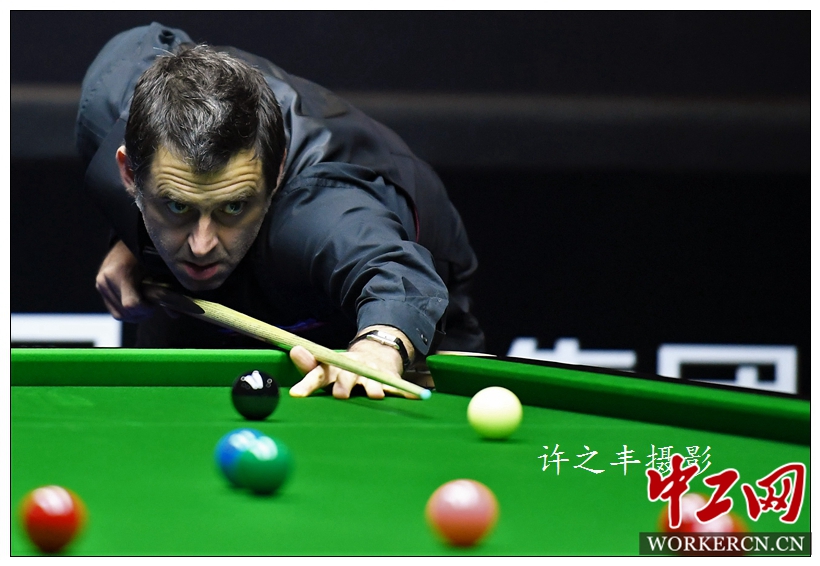 4月3日晚,2018世界斯诺克中国公开赛,在第2号球台爆出了本届比赛最大冷门,世界排名第二的英格兰选手奥沙利文以2比6输给斯莱塞无缘32强。不过今晚奥沙利文打出了职业生涯的第14杆147分。在开幕仪式上奥沙利文曾表示“不差钱,来中国就像度假,这种轻松的感受奥沙利文似乎很享受。”本届中国公开赛的满分奖是35,000英镑,单杆最高分奖是7,000英镑。如果没有人再次打出147分,奥沙利文将拿走全部奖金。图为4月3日晚奥沙利文与斯莱塞的比赛。工人日报-中工网记者许之丰摄影报道