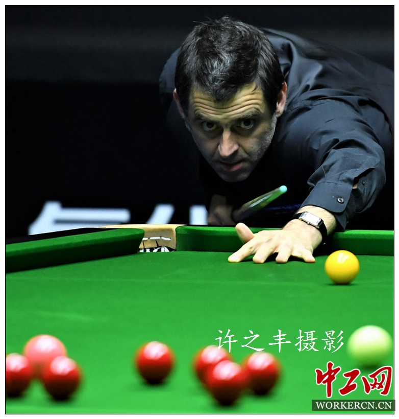 世界斯诺克中国赛奥沙利文单杆147出局。图为4月3日晚奥沙利文与斯莱塞的比赛。工人日报-中工网记者许之丰摄影报道
