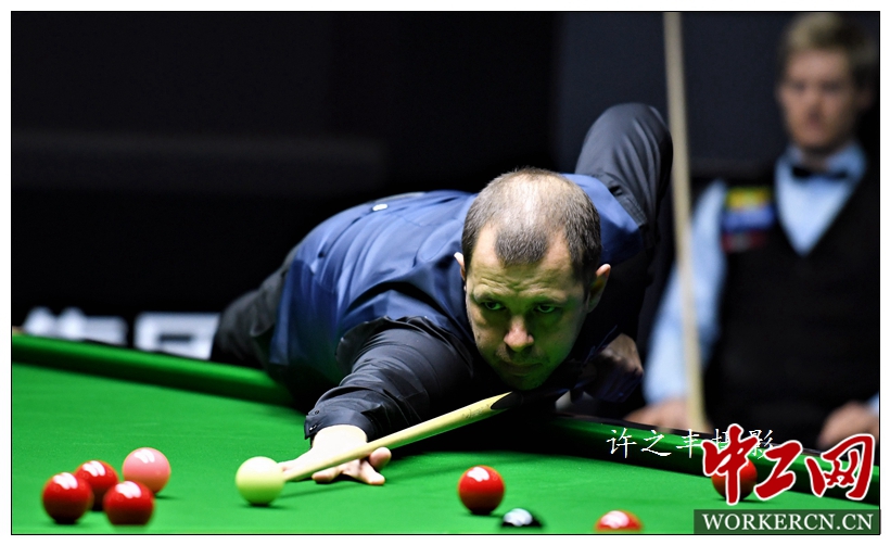 4月7日晚,2018赛季斯诺克中国公开赛,在半决赛的比赛中,英格兰名将霍金斯完成两杆破百,最终以10比6击败澳大利亚名将罗伯逊,职业生涯首次打进中国公开赛决赛。工人日报-中工网记者许之丰摄影报道