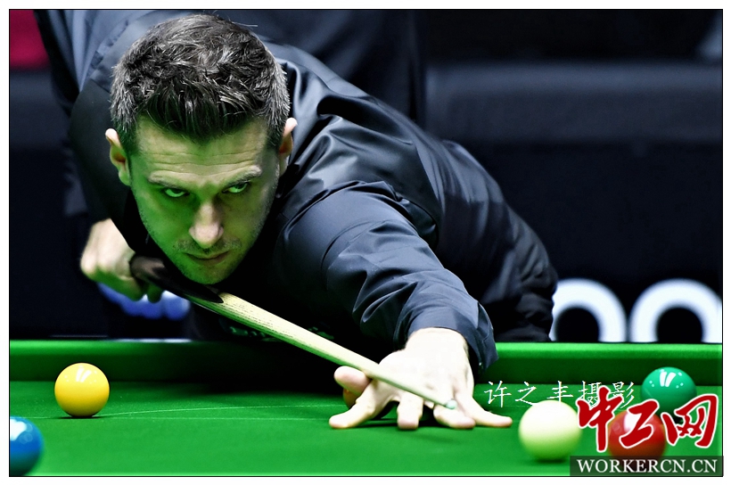 4月7日晚,2018赛季斯诺克中国公开赛,在半决赛的比赛中,卫冕冠军塞尔比经历鏖战,最终10比8击败赢得丁俊晖的威尔逊,挺进决赛,将和霍金斯争夺冠军。工人日报-中工网记者许之丰摄影报道