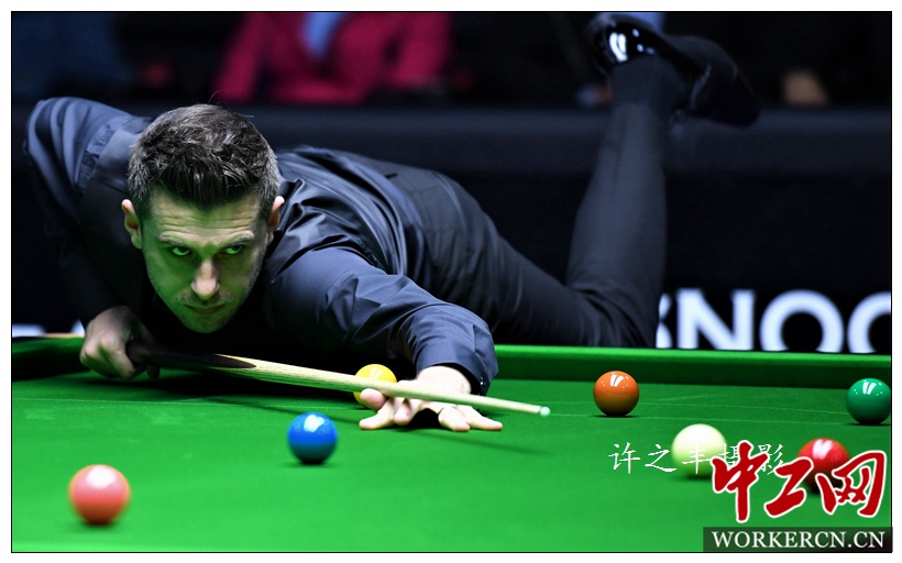 4月7日晚,2018赛季斯诺克中国公开赛,在半决赛的比赛中,卫冕冠军塞尔比经历鏖战,最终10比8击败赢得丁俊晖的威尔逊,挺进决赛,将和霍金斯争夺冠军。工人日报-中工网记者许之丰摄影报道