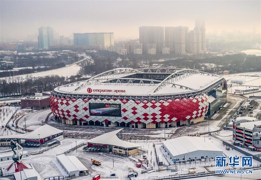 ↑图为2018年1月24日拍摄的雪中的斯巴达克体育场外景。新华社/法新