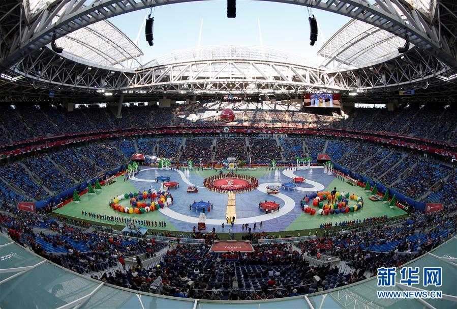 ↑图为2017年7月2日联合会杯闭幕式期间拍摄的圣彼得堡体育场内景。 新华社/路透
