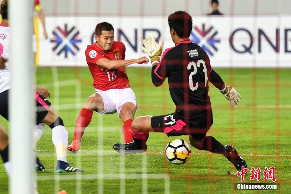 4月17日晚,广州恒大球员黄博文破门瞬间。当晚,2018赛季亚冠联赛小组赛最后一轮收官战展开,广州恒大主场3比1战胜大阪樱花。至此,恒大凭借3胜3平积12分的不败战绩,以小组头名出线。中新社记者 陈骥旻 摄