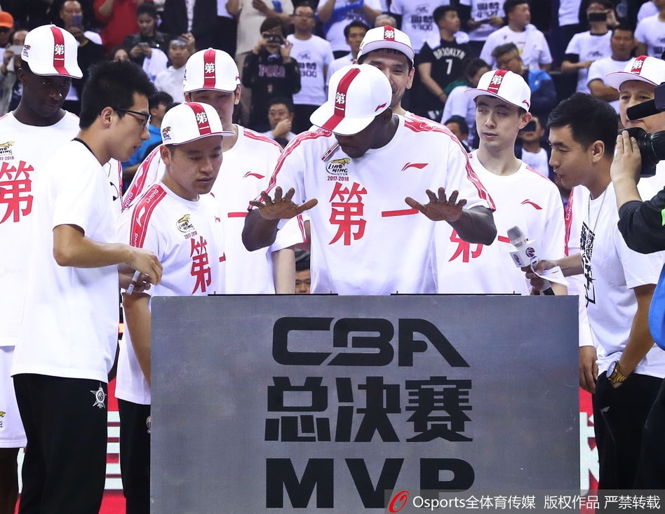 2018年4月22日,2017-2018赛季CBA总决赛第4场,辽宁战胜广厦总分4-0横扫对手,夺得队史首冠,颁奖仪式。