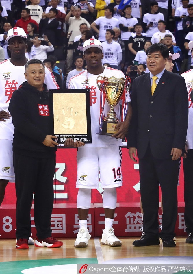 2018年4月22日,2017-2018赛季CBA总决赛第4场,辽宁战胜广厦总分4-0横扫对手,夺得队史首冠,颁奖仪式。