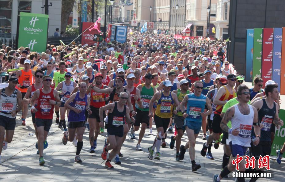 4月22日,世界六大顶级马拉松之一的伦敦马拉松比赛,在历史名城伦敦举行。为纪念世界上第一个标准距离的马拉松赛在伦敦举行110周年,英国女王伊丽莎白二世为此次比赛发出了起跑令,包括全球顶级高手在内的4万多名来自世界各地的马拉松爱好者参加了该项马拉松“金牌赛事”。图为比赛的前段赛程,人头攒动,人流如潮。