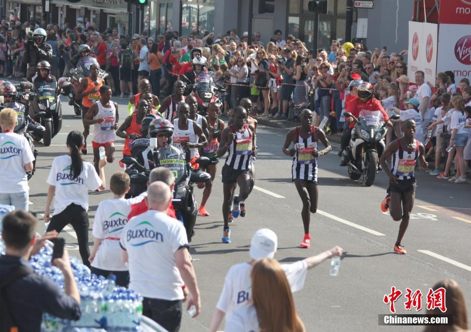 4月22日,世界六大顶级马拉松之一的伦敦马拉松比赛,在历史名城伦敦举行。为纪念世界上第一个标准距离的马拉松赛在伦敦举行110周年,英国女王伊丽莎白二世为比赛发出了起跑令,包括全球顶级高手在内的4万多名来自世界各地的马拉松爱好者,参加了该项马拉松“金牌赛事”。图为比赛中的第一方阵被黑人高手包揽。