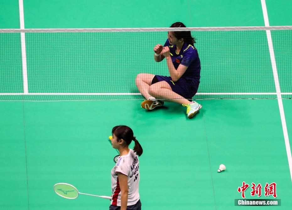 4月25日,高昉洁获胜后喜极而泣。当日,在武汉举行的2018年亚洲羽毛球锦标赛女单首轮比赛中,中国选手高昉洁以2:0战胜日本选手奥原希望,晋级下一轮。 中新社记者 张畅 摄