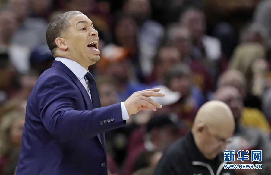 ↑4月25日,骑士队教练泰伦·卢在场边指挥。新华社/美联