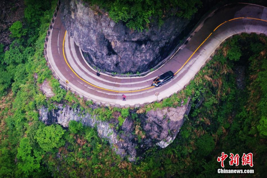 卿运辉滑过悬崖边的弯道。丁云娟 摄
