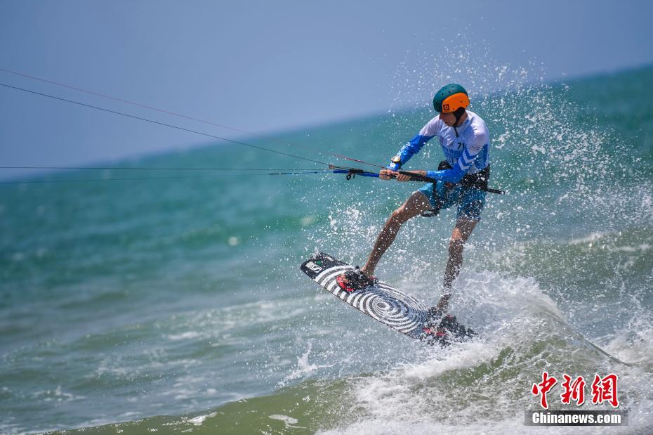 5月8日,2018中国博鳌国际风筝冲浪节青奥会资格赛第五个比赛日在海南省琼海市博鳌镇附近海域举行。据了解,此次比赛共吸引了来自32个国家19岁以下的100名运动员参加,角逐2018阿根廷布宜诺斯艾利斯青年奥林匹克运动会风筝冲浪项目的男、女各四名参赛名额。图为男选手在比赛中。 骆云飞 摄
