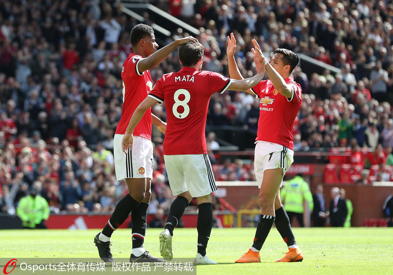 第15分钟,马塔在禁区前沿斜传,桑切斯在禁区右侧凌空抽射,皮球打偏。曼联在第34分钟打破僵局。卡里克后场精准长传,马塔反越位成功,他将球分给了一旁的拉什福德,后者轻松推射空门得分。