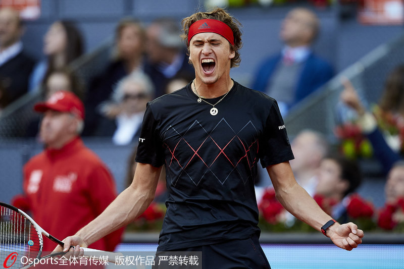 人民网北京5月14日电(胡雪蓉)北京时间5月14日凌晨,2018年马德里大师赛男单决赛落幕,赛会2号种子、德国选手A·兹维列夫以6-4/6-4战胜奥地利选手蒂姆,夺得个人第3个大师赛冠军,这也是他个人职业生涯的第8冠。(Osports全体育传媒 版权作品 严禁转载)