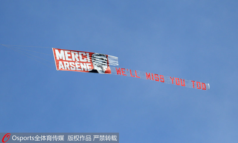 人民网北京5月14日电(杨磊) 北京时间5月13日晚,本赛季英超联赛最后一轮展开争夺,阿森纳客场1-0战胜哈德斯菲尔德,枪手主教练温格完成了自己执教阿森纳的最后一场比赛,全场球迷向温格致敬。