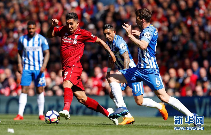 ↑5月13日,利物浦队球员菲尔米诺(前左)在比赛中进攻。新华社/路透