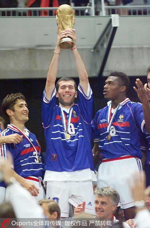 决赛在法兰西体育场进行。凭借着主场球迷如潮的助威声,齐达内利用两个几乎相同的头球,帮助法国打开胜利之门。最终,法国以3-0击败巴西,历史上首获大力神杯。