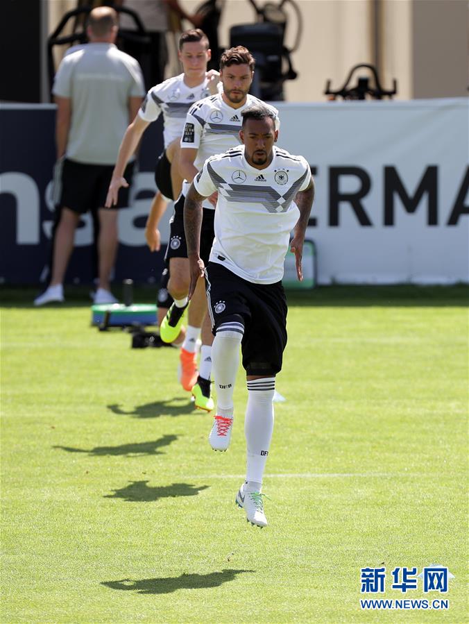 ↑6月5日,德国队球员博阿滕(前)在训练中。新华社/路透