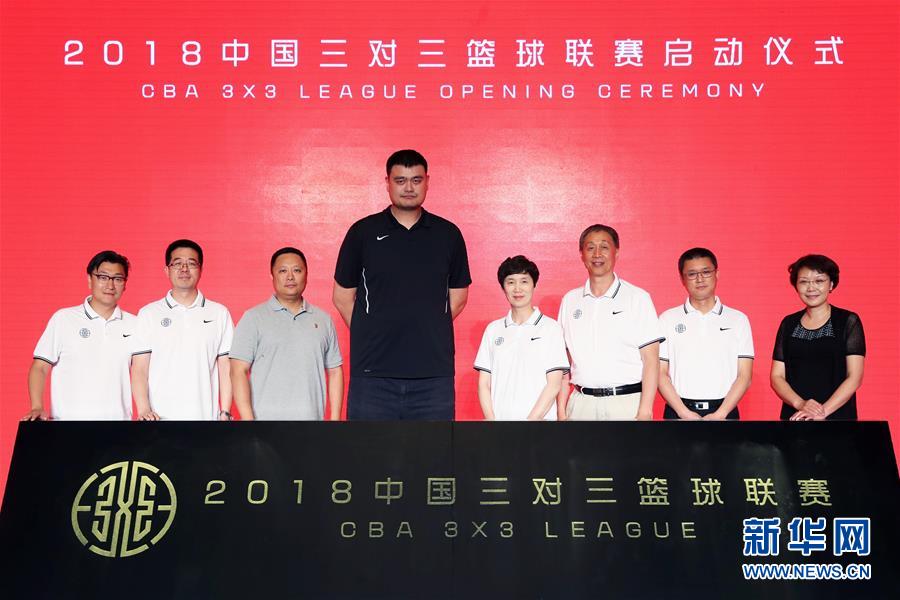 ↑6月6日,中国篮球协会主席姚明(左四)等嘉宾在启动仪式上。 当日,2018中国三对三篮球联赛启动仪式在北京举行。 新华社记者孟永民摄