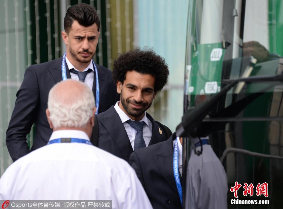 当地时间6月10日,埃及队乘机抵达俄罗斯格罗兹尼,埃及队在世界杯期间将在这里临时驻扎。球队当家球星萨拉赫笑容满面,看起来心情不错。此前在欧冠决赛中受伤的他目前还没有确定能否参加埃及队的世界杯首场比赛。 图片来源:Osports全体育图片社
