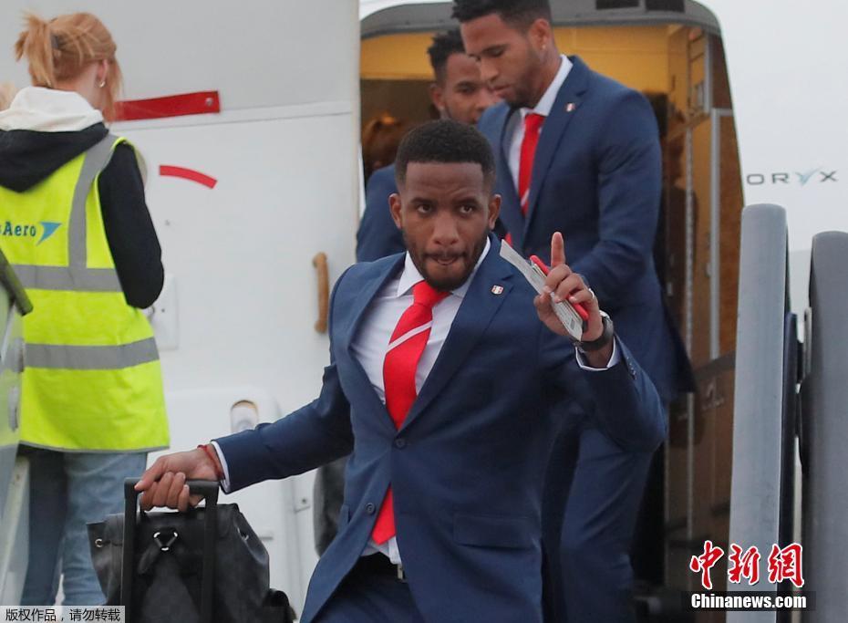 当地时间6月10日,秘鲁国家队乘机抵达莫斯科谢列梅捷沃国际机场。图为球队的锋线小将法尔范。