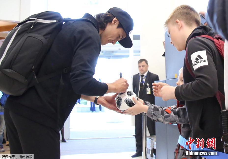 乌拉圭球星卡瓦尼给球迷送上签名。