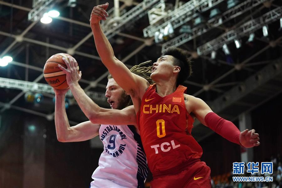 ↑6月12日,中国男篮红队球员赵睿(右)与澳大利亚NBL联队球员克雷格·E·穆勒在比赛中争抢。当日,在北京进行的2018中澳国际男篮对抗赛中,中国男篮红队以82比62战胜澳大利亚NBL(澳大利亚国家篮球联赛)联队。新华社记者鞠焕宗摄