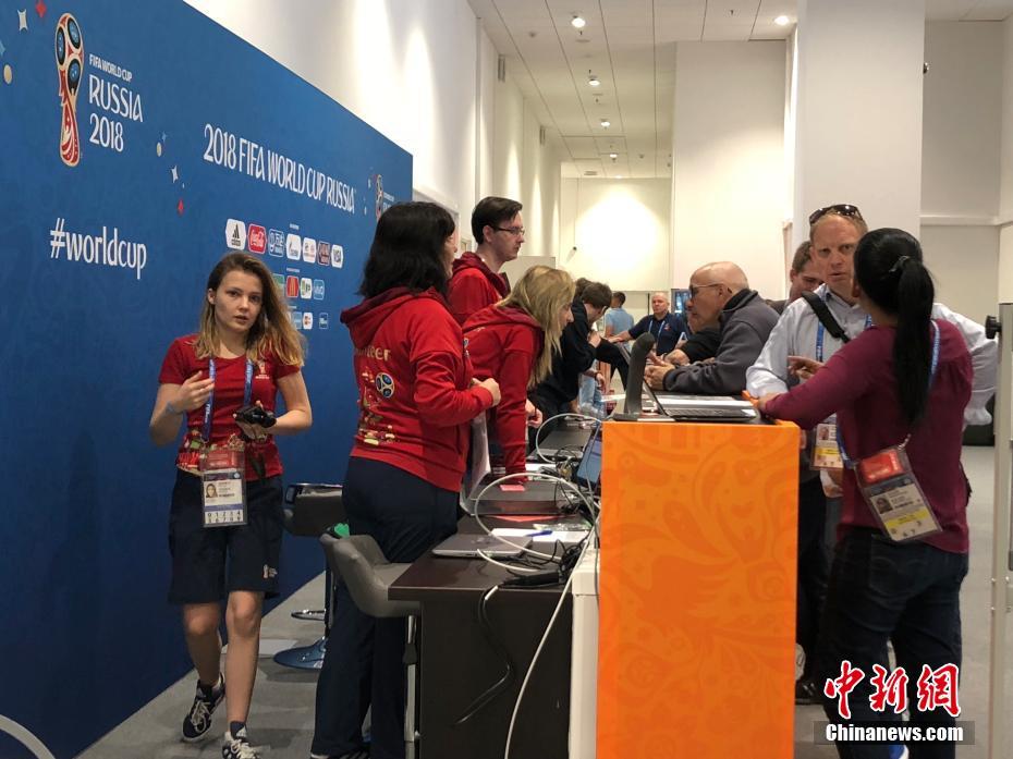 当地时间6月13日,中新社记者来到俄罗斯世界杯莫斯科卢日尼基体育场新闻中心探访。卢日尼基体育场将在明天迎来2018世界杯开幕式。中新社记者 田博川 摄