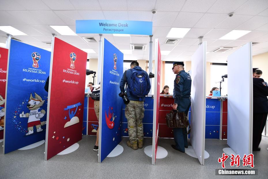 当地时间6月13日,来自世界各地的记者们在2018俄罗斯世界杯足球赛媒体注册中心办理证件。2018俄罗斯世界杯足球将于6月14日晚揭幕。中新社记者 毛建军 摄