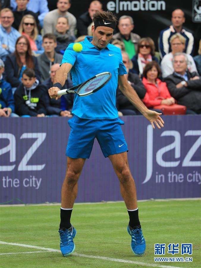 ↑梅赛德斯杯:费德勒晋级八强 6月13日,费德勒在比赛中回球。当日,在德国斯图加特进行的梅赛德斯杯网球公开赛男单第二轮比赛中,瑞士选手费德勒以2比1战胜德国选手米沙·兹维列夫,晋级八强。新华社发(菲利普·鲁伊兹摄)