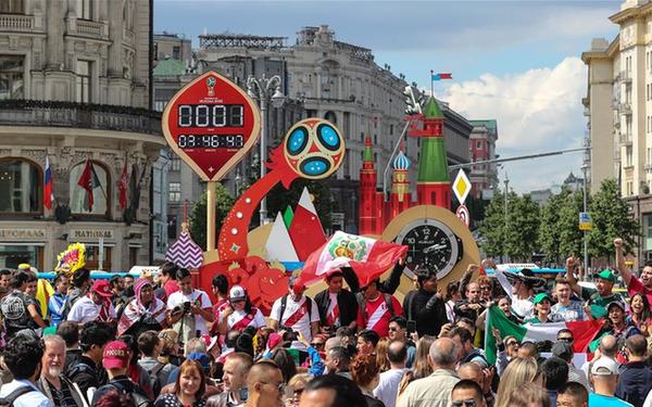 世界杯大幕即将拉开 莫斯科红场成球迷海洋