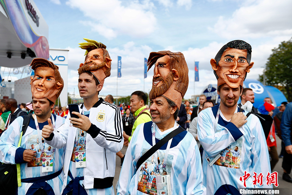 北京时间6月14日23点,俄罗斯世界杯揭幕战即将在莫斯科卢日尼基体育场打响,东道主俄罗斯对阵沙特阿拉伯。比赛开始前,各国球迷聚集在卢日尼基体育场外狂欢,热情高涨。 中新社记者 富田 摄