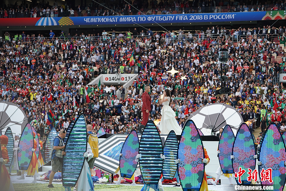 北京时间6月14日22点30分,俄罗斯世界杯开幕式在莫斯科卢日尼基体育场上演,这意味着四年一度的足球盛宴正式拉开帷幕。虽然开幕式表演时长不长但极具创意。开幕式结束后,北京时间23点,世界杯的揭幕战将也在这儿打响。在国际足联公布的俄罗斯世界杯开幕式表演嘉宾名单当中,除了有俄罗斯著名女高音歌唱家阿依达·嘉丽弗莉娜、英国著名流行歌手罗比·威廉姆斯外,还有两届世界杯冠军得主罗纳尔多。此外,在开幕式上,还将有1561人表演团队练习颠球,该项目有望突破吉尼斯纪录。 中新社记者 毛建军 摄