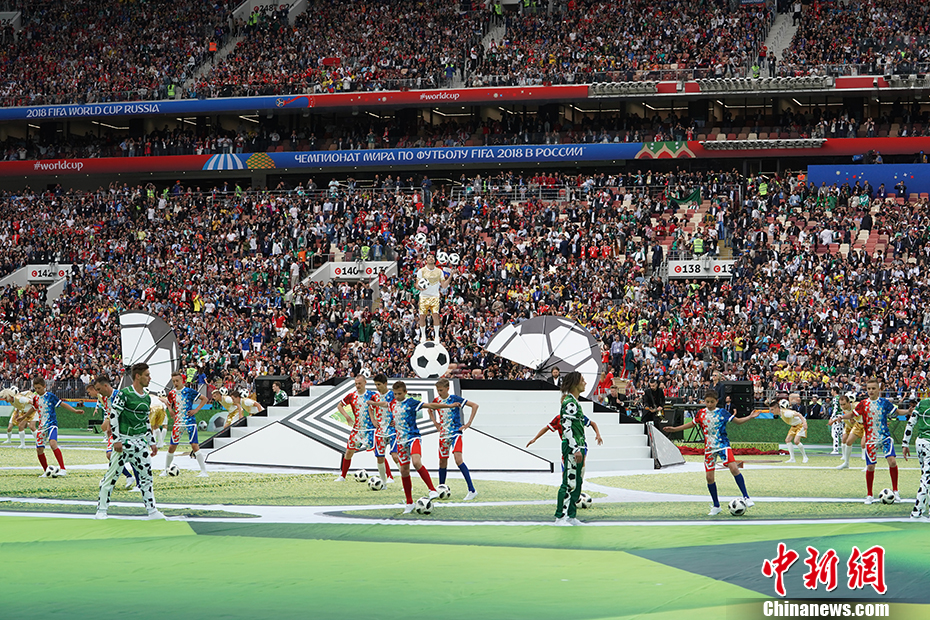 北京时间6月14日22点30分,俄罗斯世界杯开幕式在莫斯科卢日尼基体育场上演,这意味着四年一度的足球盛宴正式拉开帷幕。虽然开幕式表演时长不长但极具创意。开幕式结束后,北京时间23点,世界杯的揭幕战将也在这儿打响。在国际足联公布的俄罗斯世界杯开幕式表演嘉宾名单当中,除了有俄罗斯著名女高音歌唱家阿依达·嘉丽弗莉娜、英国著名流行歌手罗比·威廉姆斯外,还有两届世界杯冠军得主罗纳尔多。此外,在开幕式上,还将有1561人表演团队练习颠球,该项目有望突破吉尼斯纪录。 中新社记者 毛建军 摄
